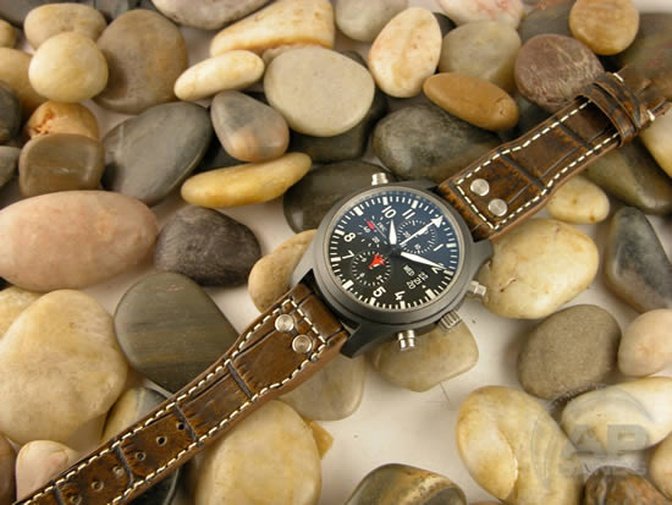 Prototipo Capolavoro Vintage Chocolate Rub Alligator Leather Tang Strap For IWC Big Pilot, Stowa, Debaufre - AP Bands