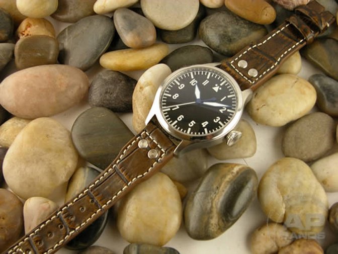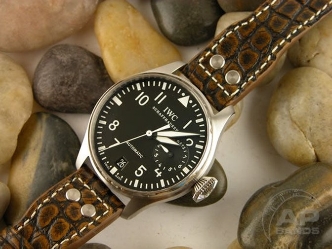 Prototipo Capolavoro Vintage Chocolate Rub Alligator Leather Deployant Strap For IWC Big Pilot, Stowa, Debau - AP Bands